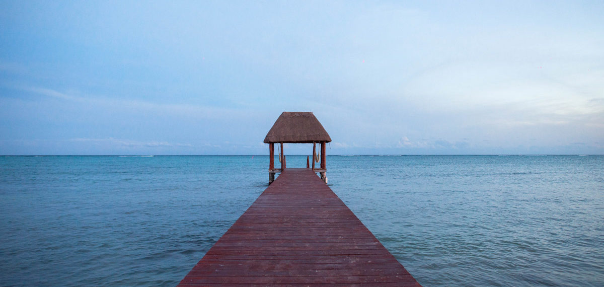 Walk to the end of the pier and admire the turquoise Mexican Caribbean Sea.