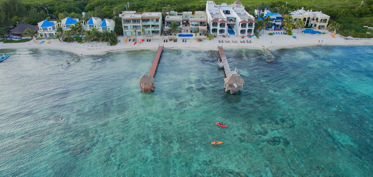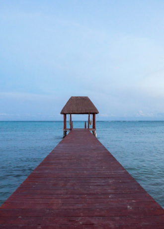 Camina hasta el final del muelle y admira el color turquesa del Caribe Mexicano.